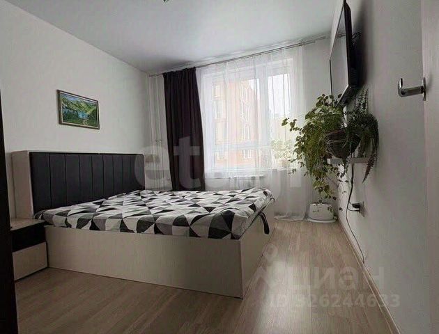 В центральной зоне спальни расположена кровать с подъёмным механизмом и местом для хранения размером 160200 см. Высокий матрас средней жёсткости обеспечит комфортный сон. Шторы blackout с RGB-подсветкой и дистанционным управлением создадут уютную атмосферу, а люстра с несколькими режимами работы дополнит картину. Есть выход на открытый балкон, где проведён свет, а пол выложен керамогранитом.