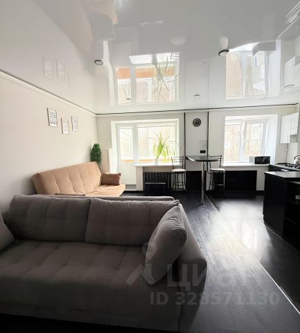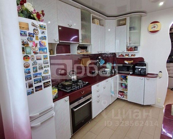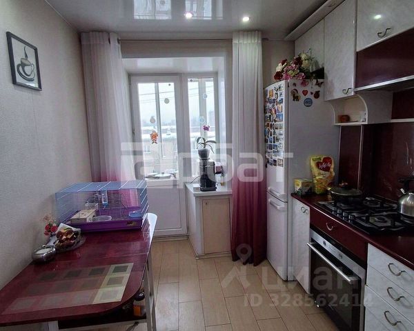 На кухне пол керамогранит, в комнатах ламинат, натяжные потолки, санузел в кафеле, балкон остеклён, была произведена замена проводки и стояков.