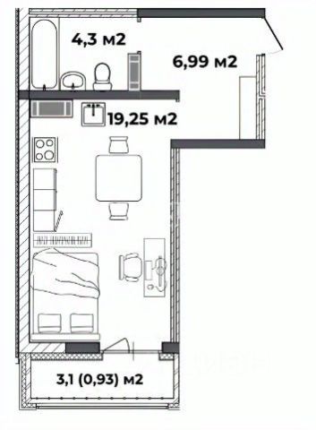 Продаётся студия в строящемся доме (Дом 4), срок сдачи: IV-кв. 2026, общей площадью 31.47 кв.м., на 6 этаже.