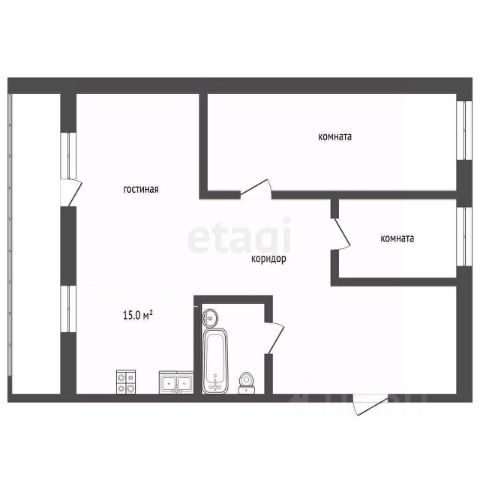 - Три раздельные комнаты: 17,4 м², 10,7 м² и 9,3 м²