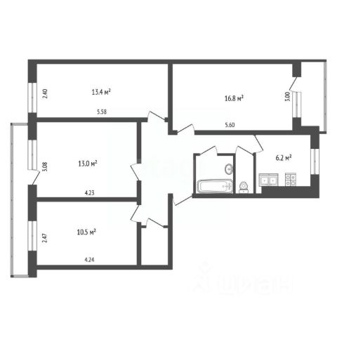 Просторная трехкомнатная 63,1 м2, идеально спроектированная для удобной жизни. Две просторные светлые комнаты 17+17 м2, спальня 12 м2 , просторный коридор с удобным большим шкафом, раздельный сан узел, уютная кухня и застекленный балкон будут радовать вас долгое время.