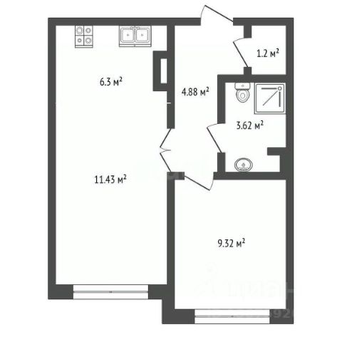 - Просторная кухня 12,6 м с выходом на лоджию. Кухня отделена от гостиной с помощью раздвижной двери, удобно готовить и принимать гостей, при необходимости зонируя пространство.