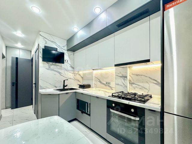 Просторная и светлая кухня (9м²), она уже ждёт ваших семейных ужинов, завтраков с кофе и запаха свежей выпечки. Стильный гарнитур на месте — добавьте свои кулинарные шедевры!