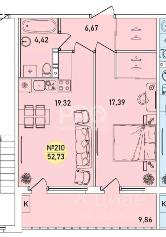 • ✓ Самая большая площадь: 52,7 м²