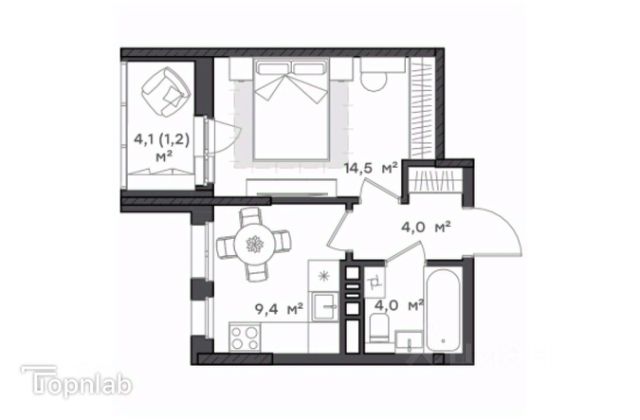 Больше, чем однокомнатная При входе в квартиру вы попадаете в просторный коридор с выделенной нишей под шкаф для одежды. Кухня гостиная разделена на две зоны: ниша под кухонный гарнитур и обеденная зона с местом для отдыха. Уютная спальня 10,4 кв.м с выходом на балкон 3,8 кв.м Ванная комната 5 кв.м с выделенной нишей под стиральную машину.