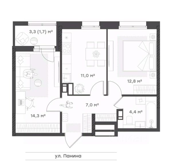Функциональность и ничего лишнего Оптимально для молодой семьи, холостяков и семьи, у которой дети выросли и живут отдельно. Уютная кухня, просторная комната с нишей под шкаф и выходом на лоджию, в котором можно обустроить кабинет или зону отдыха. Прихожая с нишей под шкаф-купе Совмещенный санузел.
