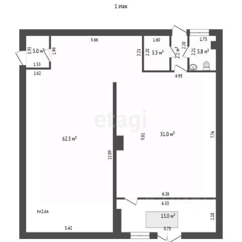 • ✅ Объект наибольшей площади: 43 м²