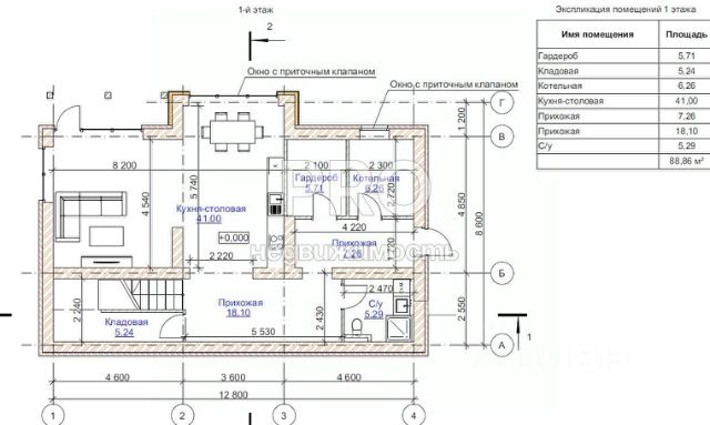 1 этаж - каминный зал, 50 м. Кухня, большой зал 100 м , ванна с душевой кабиной, бойлерная.
