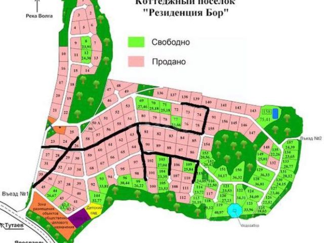 Категория земель: Земли поселений (земли населенных пунктов), 1-2 квартирные жилые дома коттеджного и усадебного типа. Адрес участка: Ярославская обл, р-н Тутаевский, с/п Константиновское, д Белавино, Резиденция Бор. Кадастровый номер: 76:15:021501:372, на плане участок 7. Напротив участок с домом, живут круглый год, ведется видеонаблюдение. Участок находится по дороге на Тутаев, от 15-го мкр-на (Брагино) на машине 6-8 мин. Рядом пос. Григорьевское (в поселке есть магазин, пункты общепита, почта и известная Богородицерождественская церковь), рядом река Волга. Ближайшие остановки автобуса: в пос. Григорьевское (около 1,5 км) и у СНТ Снежинка (около 500 м). Участок размежеван (вынесен на местность). Поселок застраивается (имеются дома с постоянным проживанием), есть электричество, зимой дороги чистятся. Хорошая дорога до самого участка, возможен груглогодичный проезд на транспорте. Один собственник.