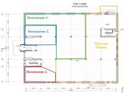 Помещение 3 (красный контур) = 65 м кв. , рассмотрим торговлю одеждой/техникой или ПВЗ