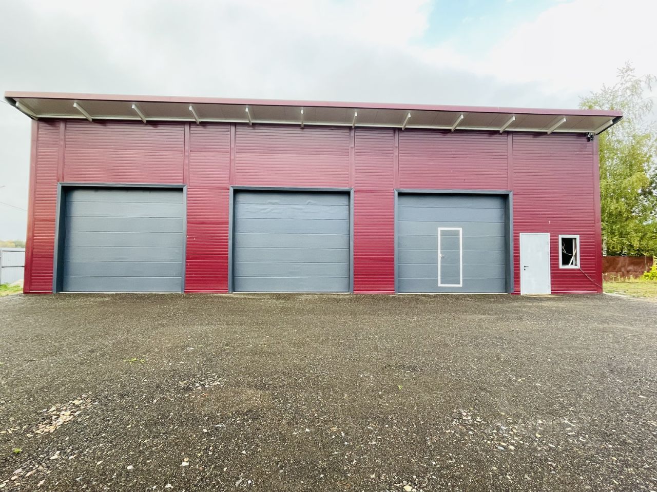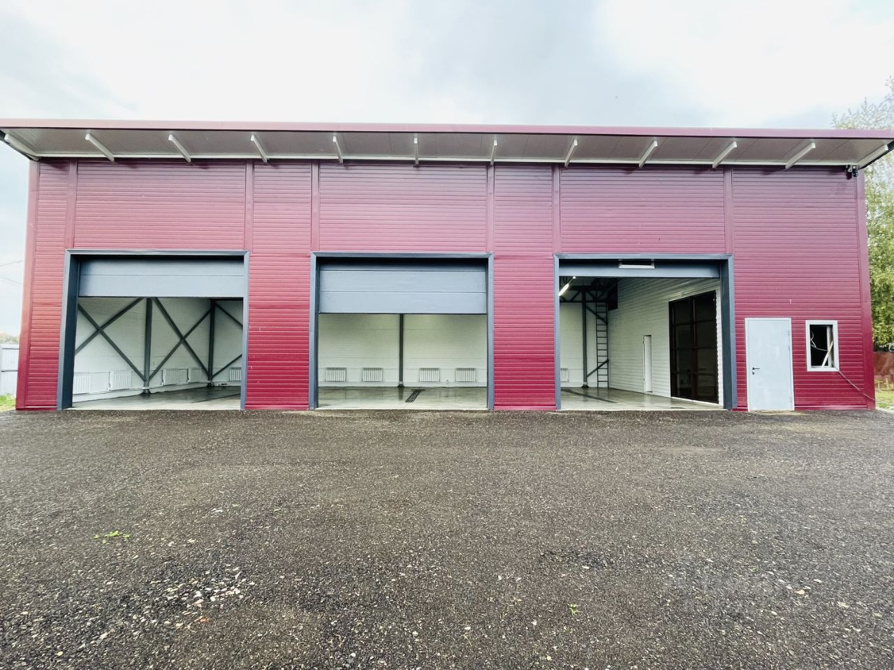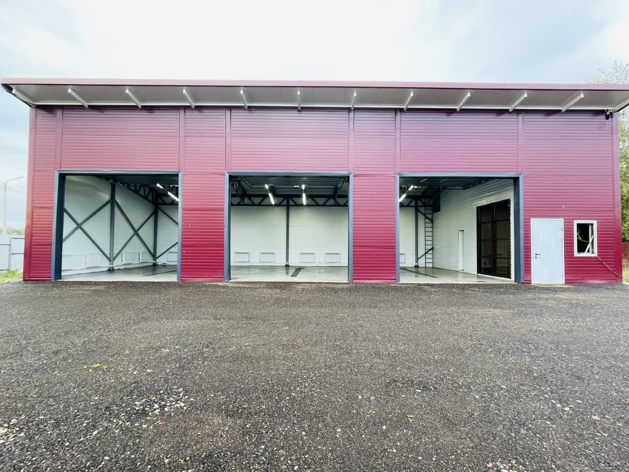 Трое секционных ворот высотой 3.5 метра и шириной 4 метра.