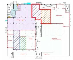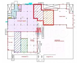 На планировке выделен красной рамкой. Один вход будет рядом со внутренним входом в Магнит, второв вход на заднюю сторону здания (где расположены зоны погрузки/разгрузки).