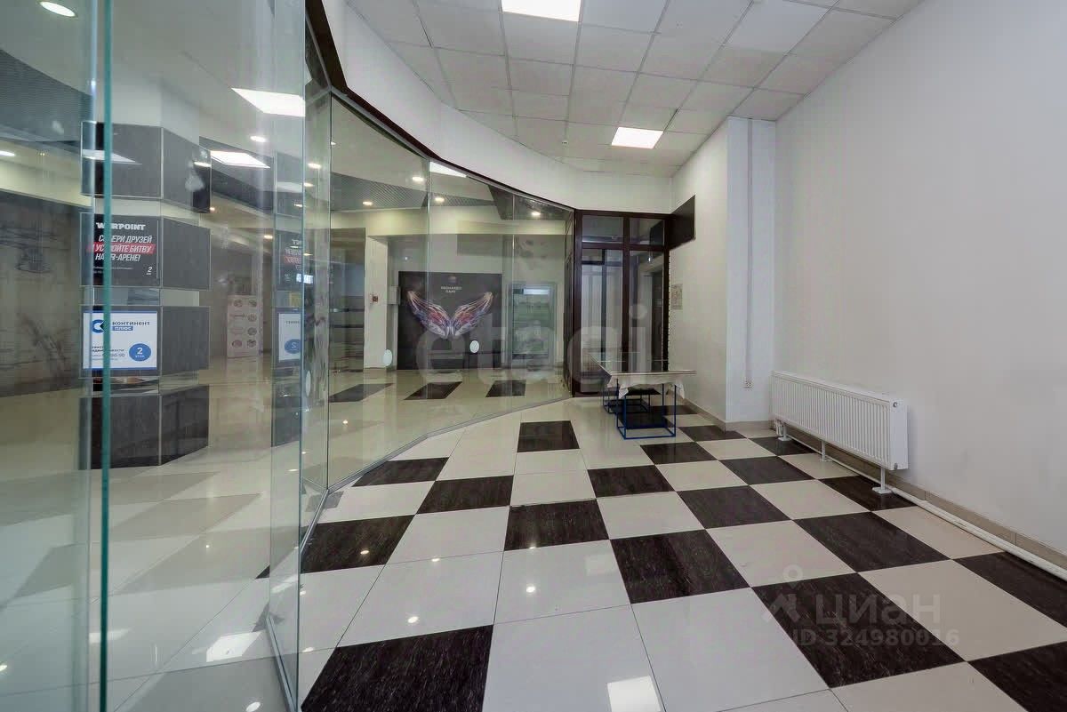 К вашим услугам современное офисное пространство площадью 98,4 м² с открытой планировкой, расположенное непосредственно напротив центрального входа в здание.