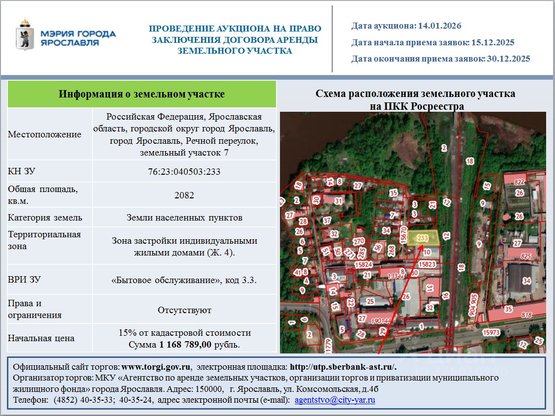 Российская Федерация, Ярославская область, городской округ город Ярославль, город Ярославль, Речной переулок, земельный участок 7