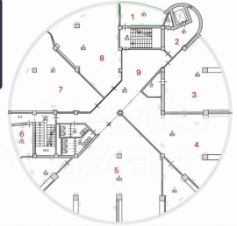Помещение на плане 1.( отдельное полностью,, с лестницы направо, Остальные помещ.в общем коридоре).