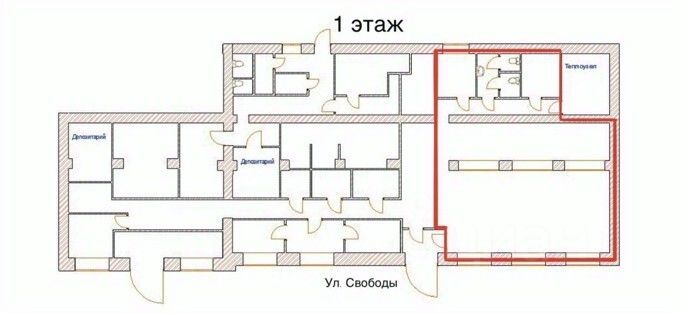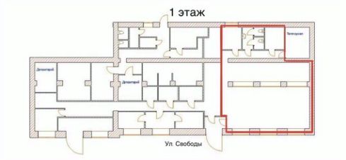 - 1 этаж: 180 + 120 (126) м² с отдельными входными группами с ул. Свободы.