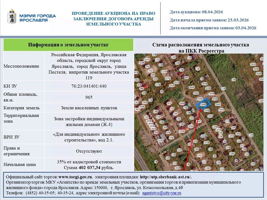 Российская Федерация, Ярославская область, городской округ город Ярославль, город Ярославль, улица Пестеля, напротив земельного участка 119