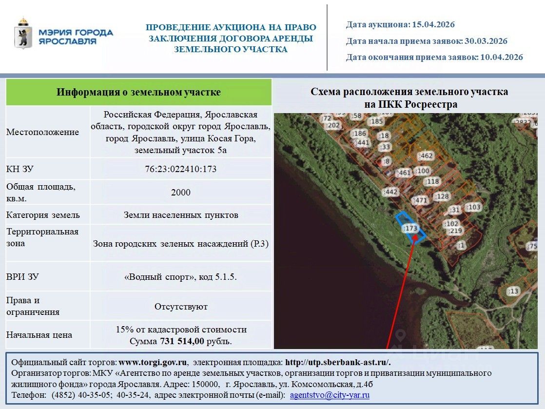 Российская Федерация, Ярославская область, городской округ город Ярославль, город Ярославль, улица Косая Гора, земельный участок 5