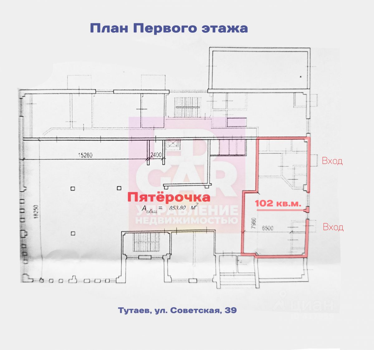 Сдаётся в аренду обособленное помещение 102 м² на 1 этаже по адресу: г. Тутаев, ул. Советская, 39.