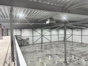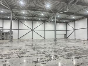 Полы - бетон с антипылью. Нагрузка на пол - 5 т/м²