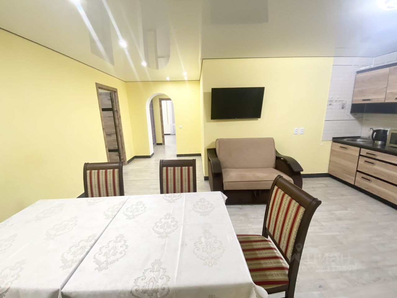 Сдаётся просторная 4-ех комнатная квартира студия со свежим капительным евро ремонтом. Замена всех труб и электропроводки. На окнах решетки. Мебель и техника вся Новая: все необходимое есть для комфортного проживания включая мелкую: утюг, СВЧ печь. Получается 8 раздельных спальных мест: 2 ш. дивана, 5 ш. односпальных кровати, 1 ш. двухспальная кровать. Можем увеличить до 10 раздельных): кровати скрепляются в двухспальные! Так же есть сушилка для белья и гладильная доска, вся посуда и постельное. Заходи и живи. Развитая инфраструктура. Проведён интернет! Рассмотрим разные варианты желающих, можно командировочных на разные сроки проживания. Работаем по безнал с Юр. лицом. Предоставляем все отчетные документы. Ключи в АН, показы в удобное для вас время! Цена зависит от количества проживающих, кровати добавляем! Залог 20 000 рублей, можем разбить! Предлагает агентство Реал Недвижимость! Просмотры бесплатно, комиссия по факту заселения