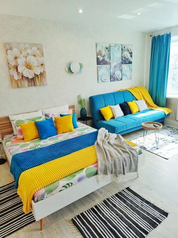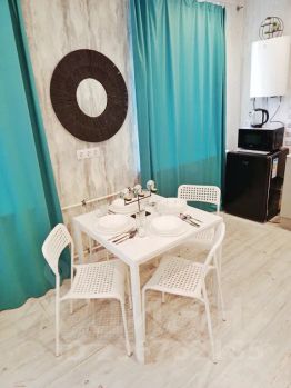 Удобная мебель, на которой вы отлично отдохнете: двуспальная кровать 180х200, раскладной диван, обеденный стол, стулья, кухонный гарнитур. Студия оборудована всем необходимым: стиральная машина, холодильник, электрический чайник, микроволновая печь, газовая конфорка, кастрюли, сковородки, полный комплект посуды на 4 персоны, фен, утюг, гладильная доска, напольная вешалка для одежды с плечиками.