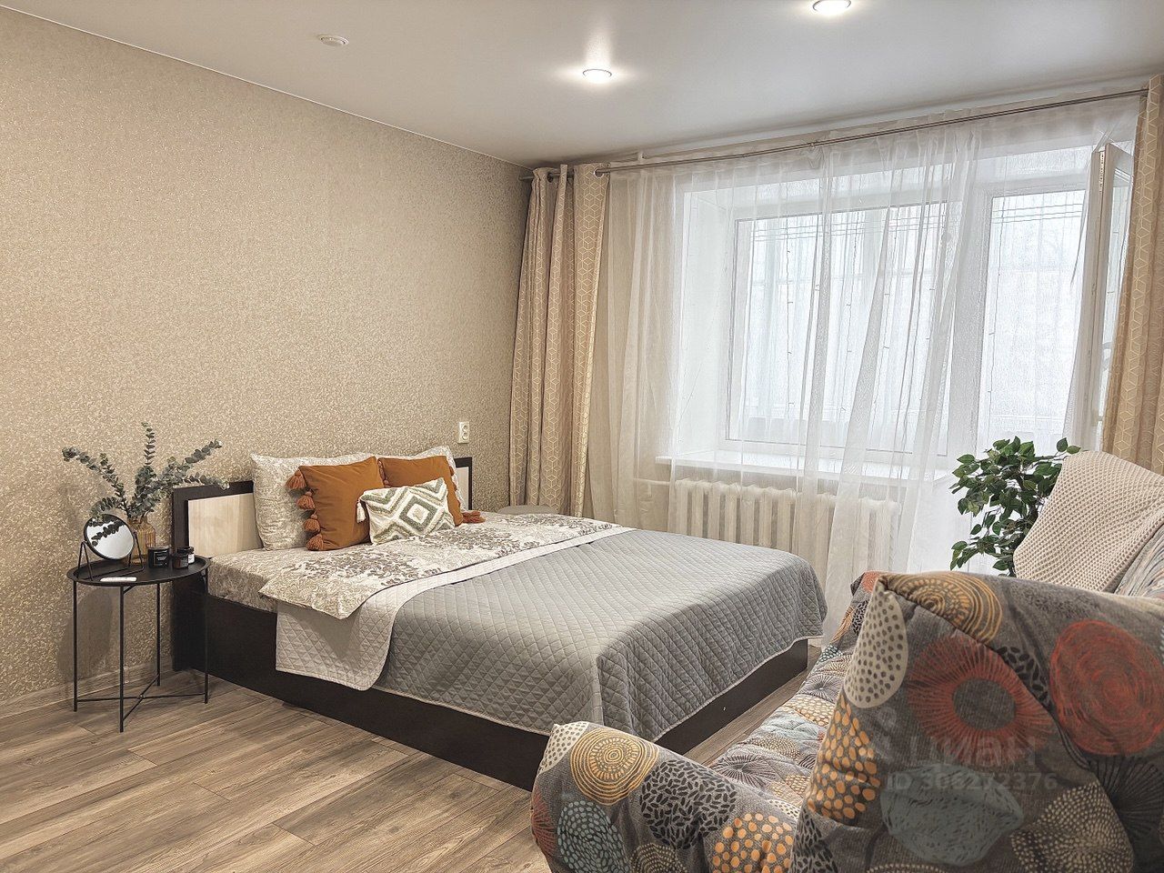 - двуспальная кровать 1,6 м. и двуспальный диван в большой комнате. В маленькой комнате 2е односпальные кровати, легко соединяющиеся в двуспальную кровать 1,6 м. При этом матрасы плотно прилегают друг к другу