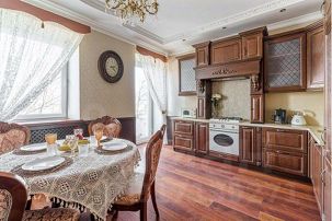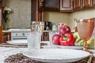 На кухне вы найдете все необходимое для приготовления и приема пищи. Отличное оснащение - духовой шкаф, газовая плита, чайник, посудомоечная машина, холодильник. Полный набор посуды.