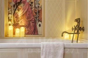 Шикарная ванная комната, здесь Вы найдете средства гигиены и пушистые полотенца для каждого гостя.