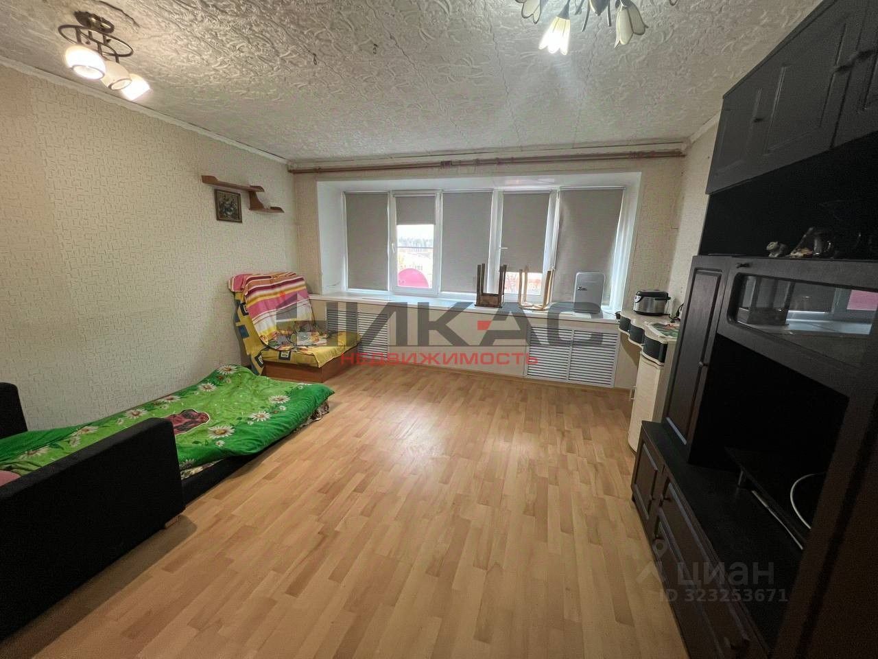 Комната просторная, большое окно (ПВХ), на полу ламинат, встроенный шкаф.