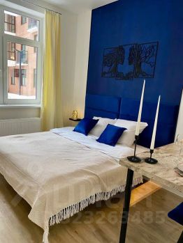 Атмосфера — с первого взгляда. Интерьер оформлен в стильной глубокой синей палитре, с мягкой подсветкой, авторским декором и "парящей" кроватью 180200. Здесь хочется обниматься, засыпать вместе и никуда не спешить.