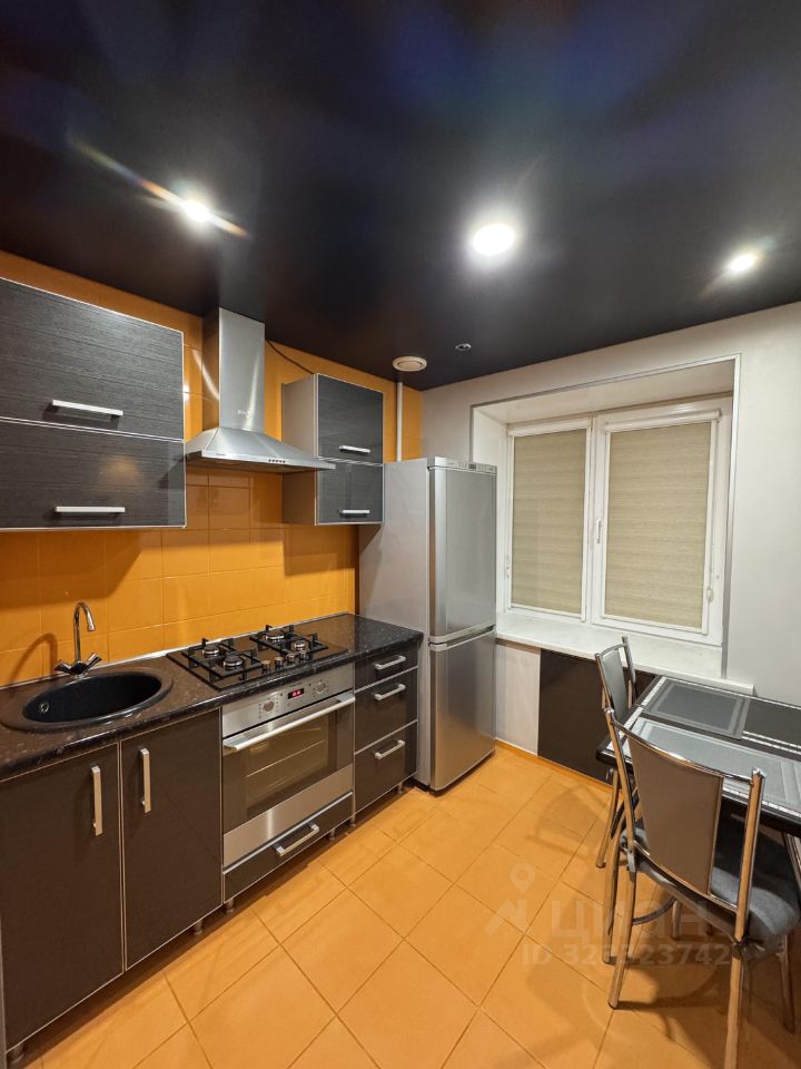 Сдается уютная однокомнатная квартира с евроремонтом по адресу Ленинградский, д. 63. Общая площадь квартиры составляет 32.7 кв. м, из которых 17 кв. м — жилая. Квартира расположена на 3 этаже 9-этажного кирпичного дома, построенного в 1974 году. Высота потолков — 2.5 метра.