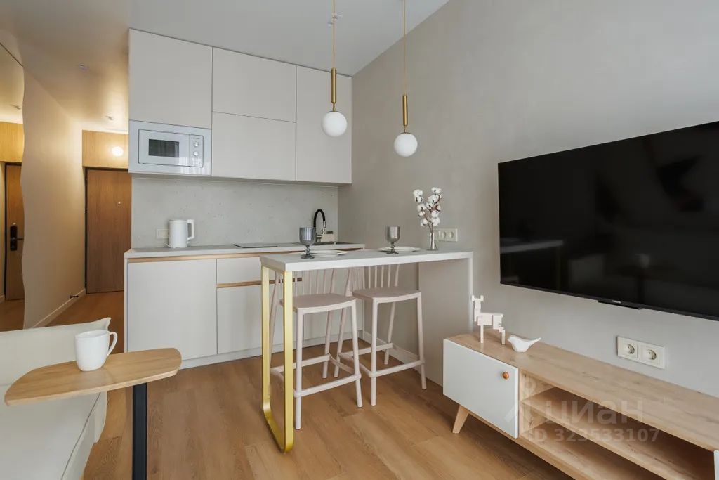 - Вся необходимая бытовая техника: телевизор, индукционная варочная поверхность, холодильник, микроволновая печь, электрочайник, утюг, фен, стиральная машина, водонагреватель, посудомоечная машина.