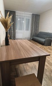 Квартира сдаётся с мебелью. В квартиру заведен кабель от интернета. Санузел совмещён, сантехника вся новая. Так же есть бойлер на случай отключения горячей воды. В квартире есть прихожая, кухня, холодильник, кухонный стол, стулья, диван , большая двуспальная кровать с ортопедическим матрасом, шкаф для одежды, стиральна машина