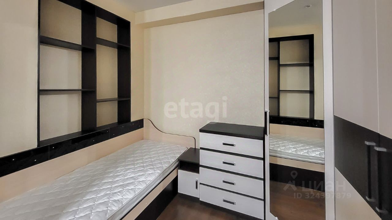 Квартира полностью меблирована и укомплектована бытовой техникой: куxонный гapнитуp cо вcтроеннoй варочной панeлью, обеденный стол и стулья, холодильник, чайник, кровать, диван, шкаф+комод, встроенный шкаф-купе в прихожей.