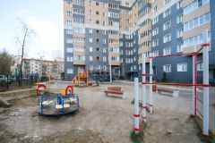 Благоустронная дворовая территория: закрытый внутренний двор без парковки, оборудованы детская и спортивная площадки, установлены лавочки.
