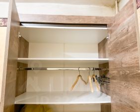 Для удобства квартиросъёмщика - в квартире есть вся мебель для проживания: много мест хранения, двуспальная кровать с матрасом, места хранения для одежды, сушилка для белья, комод, зеркало, утюг, на кухне место у окна, и стиральная машинка автомат, электрический чайник.