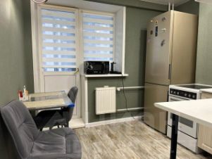 В квартире новый кухонный гарнитур, стиральная машина, диван, телевизор, микроволновая печь, электрический чайник.
