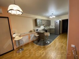 Сдаётся уютная 3-комнатная квартира с мебелью и бытовой техникой. Все спальни, две детские и родительская раздельные, имеют необходимую инфраструктуру для комфортного проживания семьи с детьми. В коридоре, разделяющим комнаты и кухню, находится детский спортивный комплекс и просторный стенной шкаф гардероба. Санузел раздельный, с большой ванной комнатой. Просторная кухня оборудована качественной бытовой техникой и имеет небольшую зону отдыха. В квартире - свежий ремонт, пол - плитка и паркетная доска (не синтетический ламинат), натяжные потолки, большая, отапливаемая по желанию лоджия.