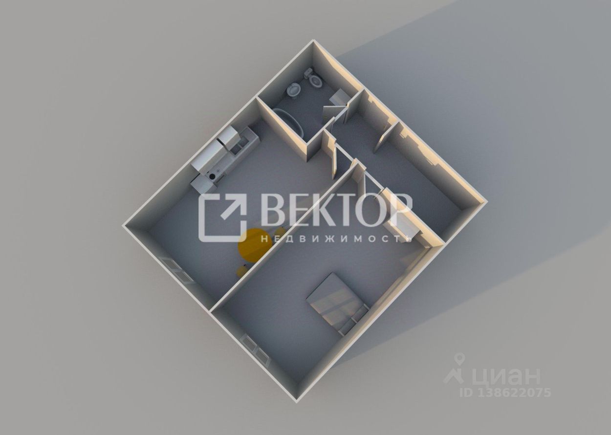Просторная планировка. Общая площадь - 40,9 м2: