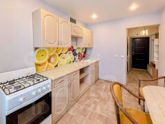 - Просторная кухня оборудована газовой плитой с духовым шкафом и холодильником, что позволяет легко организовать быт.