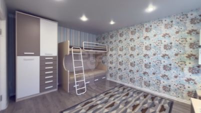 Спальня/детская: Просторная комната с двухъярусной кроватью и организованной рабочей зоной.