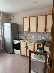 Квартира полностью готова к проживанию: в ней есть вся необходимая мебель, включая диван 140х194 см, шкафы в комнате и прихожей, обеденные столы на кухне и в комнате, а также полный комплект бытовой техники (холодильник, стиральная машина, микроволновая печь, водонагреватель, чайник).