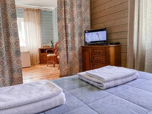 Девушки фабричные, когда-то работавшие на Переславской фабрике вышивки Новый Мир по соседству, сотворили красоту, которую теперь уже не купишь. В нашем доме сохранились льняные шторы с уникальной вышивкой на самых больших станках в Союзе. Любимая всеми комната в серых тонах находится на втором этаже и смотрит окнами во двор и на знаменитую фабрику.