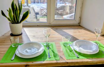 В квартире есть всё, что необходимо для комфортного проживания: двуспальная кровать, посуда для сервировки и приготовления пищи, чайник, кофеварка, газовая плита, микроволновая печь, холодильник, столовые приборы, чай, кофе, одноразовые тапочки, зубные щетки. В ванной комнате — туалетные принадлежности, гель для душа, шампунь, полотенца, фен, стиральная машина. Также есть гладильная доска, утюг, сушилка.