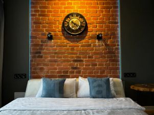 В спальне, например, шкаф-купе, двуспальная кровать с чистым постельным бельём, а на стене у изголовья подсветка и атмосферный ночник в виде лунохода.