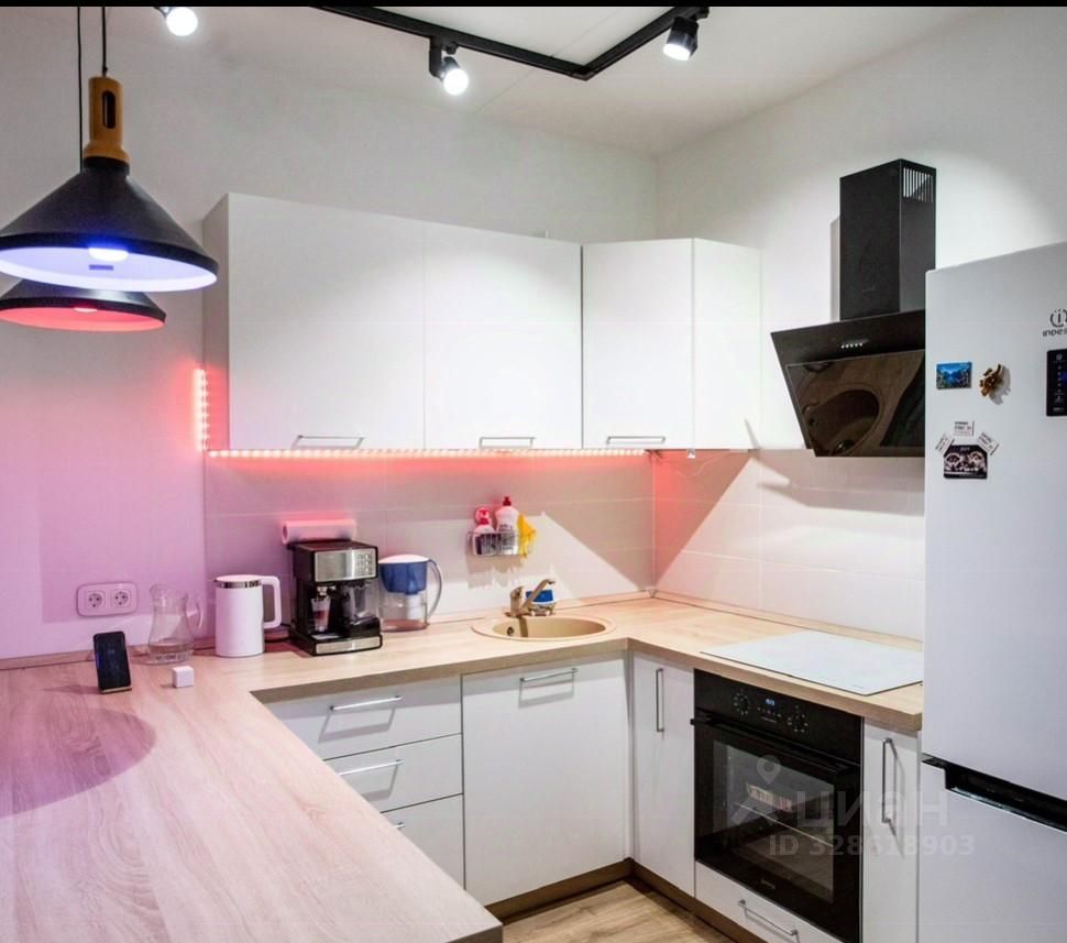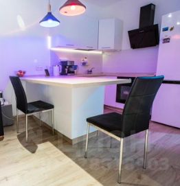 Кухня-гостиная 15 м² полностью подготовлена к комфортной жизни: обеденный стол, угловая кухня, холодильник, плита, микроволновка, духовка, вытяжка, чайник, посуда. Вся техника и мебель в квартире новая.