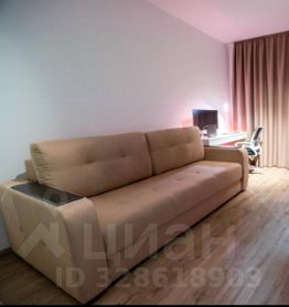 Спальня 17 м². Раскладной диван, постельные принадлежности, большой шкаф, письменный стол