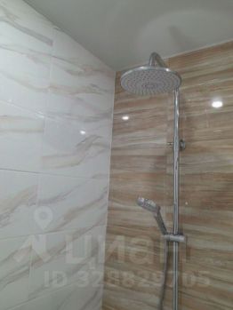 В ванной комнате современная душевая с тропическим душем.