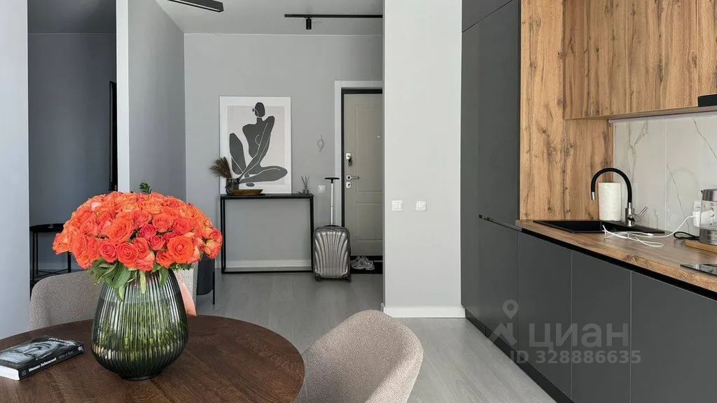Идеальная планировка квартиры с гостиной совмещённой с кухней и две изолированные комнаты, спальня и кабинет.